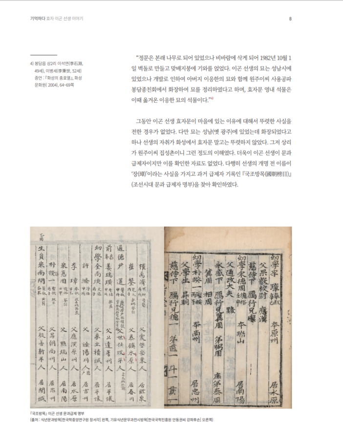 화성문화원에서 계간지 문화의 뜰 원고 청탁을 받아 그간 화성시 효자로 널리 알려졌지만 정확한 사실 확인이 안되었던 이곤 선생에 대해서 조금이나마 선생의 신상에 대해서 확인할 수 있었다. 이 글을 쓰게 되었던 본격적인 연구의 시작이 된 블로그 게시글이다.