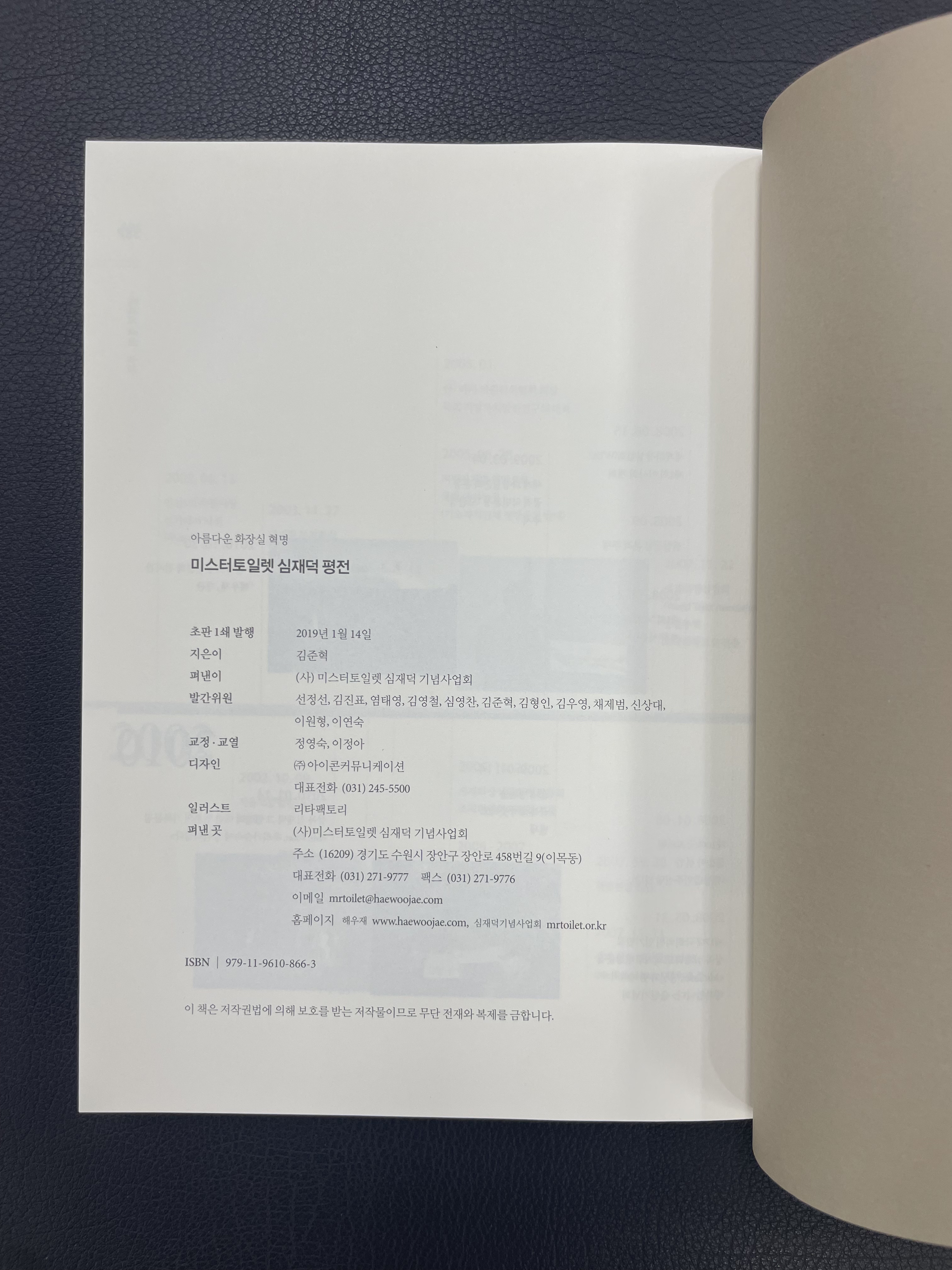 김준혁, 2019, 『아름다운 화장실 혁명 미스터토일렛 심재덕 평전』, (사) 미스터토일렛 심재덕 기념사업회(도서출판 아이콘), 27쪽.