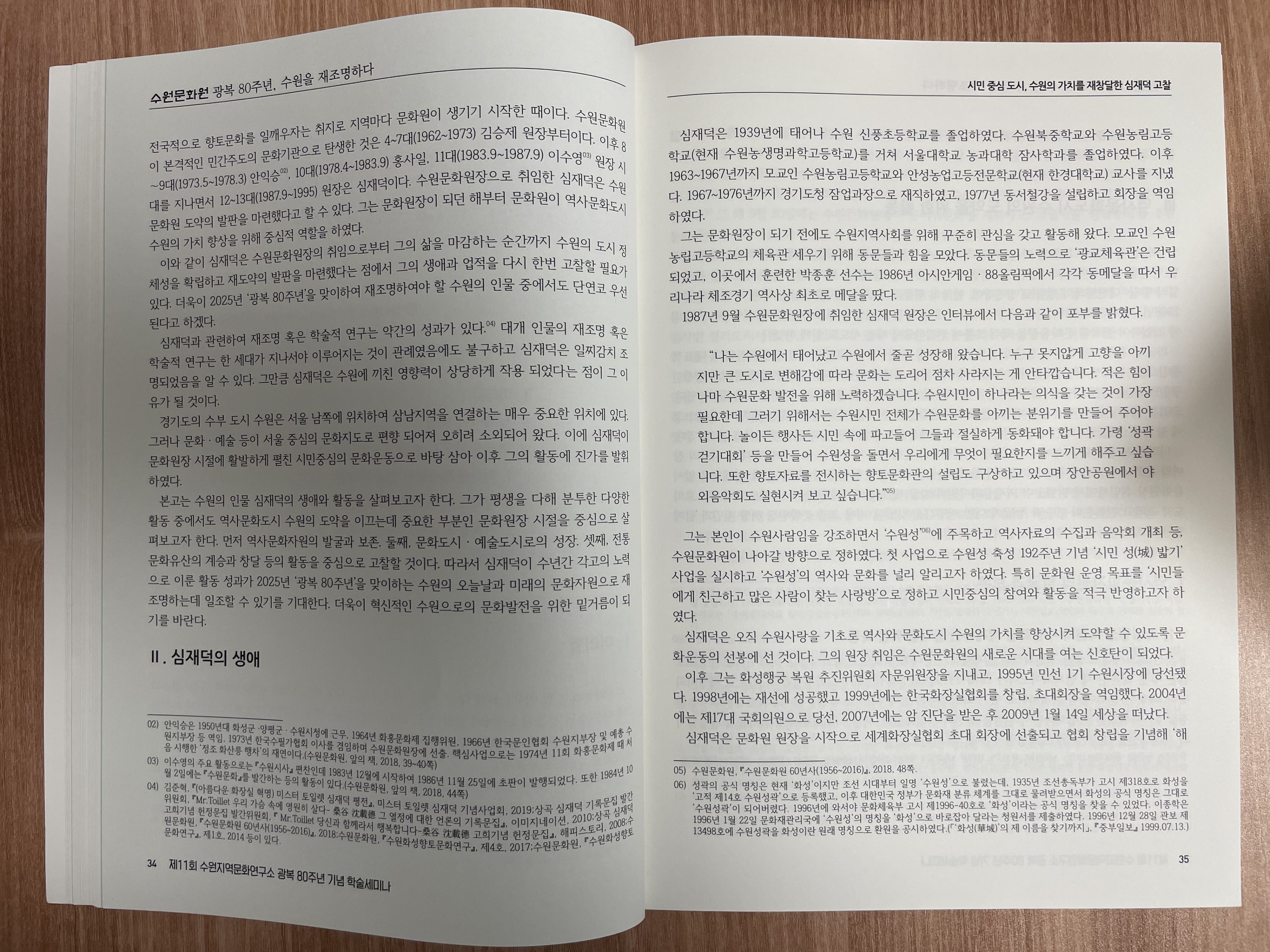 1987년 9월 수원문화원장에 취임한 심재덕 원장 인터뷰: 수원문화원, 2018, 『수원문화원 60년사(1956~2016)2, 48쪽.