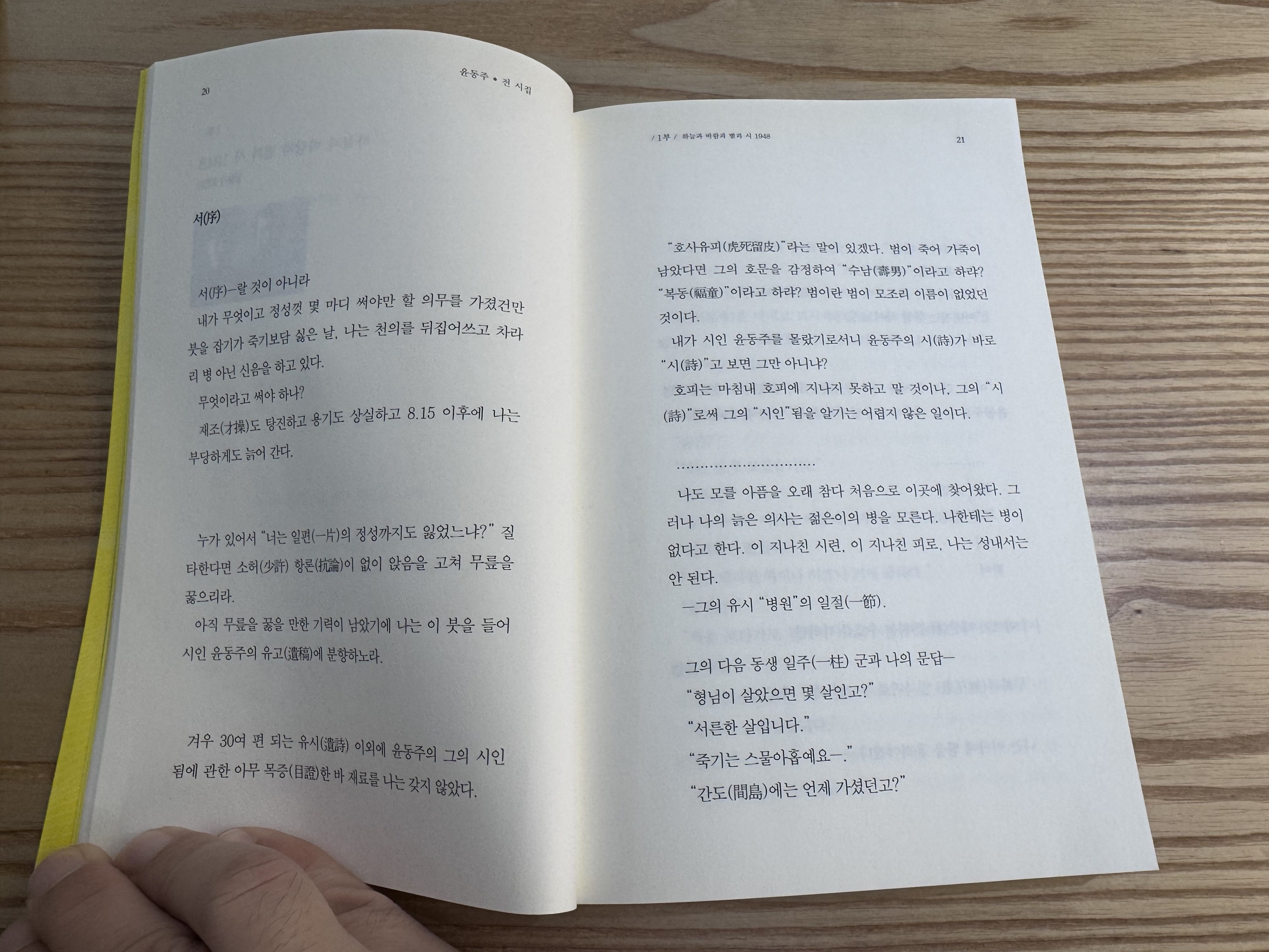 아직 무릎을 꿇을 만한 기력이 남았기에 나는 이 붓을 들어 시인 윤동주의 유고(遺稿)에 분향하노라.